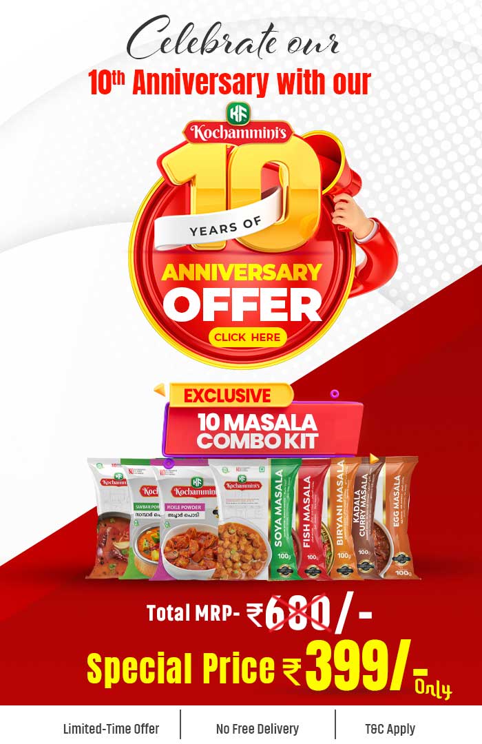 Founded in 2016, Kochammini’s Foods Pvt. Ltd. is a trusted name in premium spices and food products. Committed to purity and quality,we use advanced processing techniques to ensure our products are 100% natural, free from artificial colors and preservatives.With a passion for excellence, we bring the finest flavors to your kitchen.